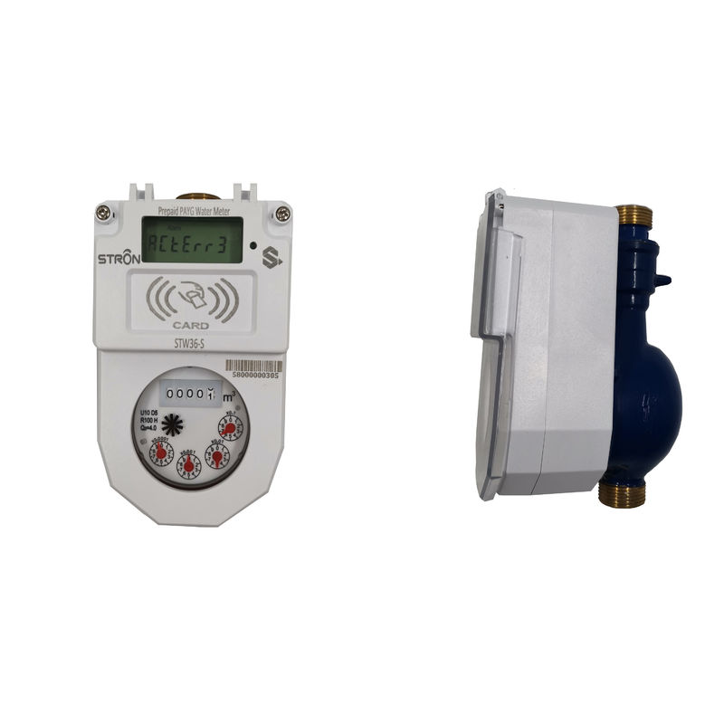 STW36-S é um medidor de água esperto do pagamento adiantado do cartão seco e horizontal de IC lançado pela empresa de Stron. Usres recarrega a água - baseada no cartão esperto do RFID. Este produto esperto tem direitos de propriedade intelectual independentes. Os componentes eletrônicos do módulo de medidor de água fizeram o ultra-baixo processador novo como o núcleo, detecção do consumo de potência da tensão da bateria e a leitura do cartão do RFID/escrita, o medidor de água esperto seco pagado antecipadamente etc. “Stron” têm funções da medida do volume de água, da válvula automaticamente de controlo, da interferência antimagnética, da nenhuma água do retorno, da tarifa de TOU, de IP68 perfeito etc. impermeável. Tem vantagens perfeitas do consumo da baixa potência, baixo alarme do crédito da campainha elétrica, elevada precisão e a manutenção automática da válvula e uso e prestação convenientes.